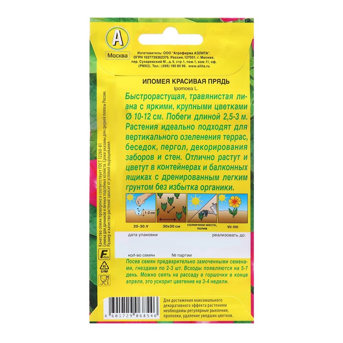 Производитель: Агрофирма АЭЛИТА; Габариты: 15 x 8 x 0,3; Страна: Нидерланды; В боксе: 600 шт; Состав: См. на упаковке; Материалы: см. на упаковке; Фасовка: по 10 шт; Индивидуальная упаковка: Без упаковки; Сертификат: Не подлежит сертификации; Цвет: Розовый; Агрономический срок годности, лет: 3; Вегетация: Однолетники; Вид: Ипомея; Особенности выращивания: Открытый грунт; Сухоцвет: Нет; Махровые: Нет; По форме куста: Кустовая; Назначение: Для создания цветников, клумбы; Отношение к свету: Светолюбивые; Разновидность: Цветущее; Нуждаются ли в стратификации: Нет