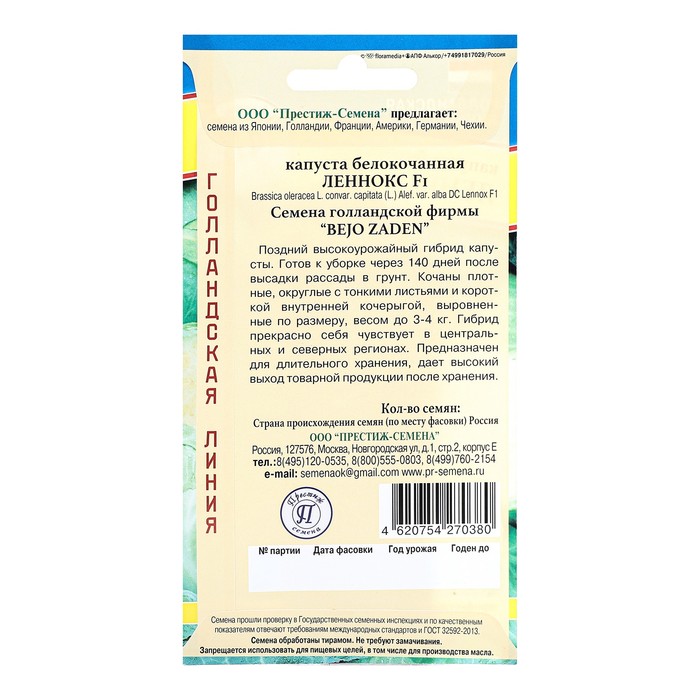 Семена Капуста "Леннокс F1" белокочанная, ц/п, 10 шт.