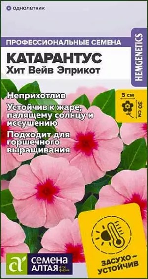 Неприхотливое засухо- и жароустойчивое растение. Быстро разрастается и хорошо ветвится, формируя компактный густой кустик. Цветение продолжительное и обильное в течение всего сезона. Цветки крупные, абрикосово-розового цвета с малиновым центром. Отлично подойдет для выращивания в балконных ящиках, кашпо и на клумбах. Высота растения: 20-30 см, ширина растения: 20-30 см, диаметр цветка: 3-5 см.