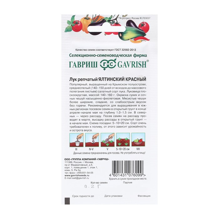Производитель: Гавриш; Габариты: 15 x 8 x 0,2; Страна: Россия; В боксе: 600 шт; Состав: См. на упаковке; Материалы: см. на упаковке; Фасовка: по 2 шт; Индивидуальная упаковка: Без упаковки; Сертификат: Не подлежит сертификации; Агрономический срок годности, лет: 3; Сроки созревания: Средний; Особенности выращивания: Открытый грунт; Сорт или гибрид: Сорт; Вид лука: Репчатый