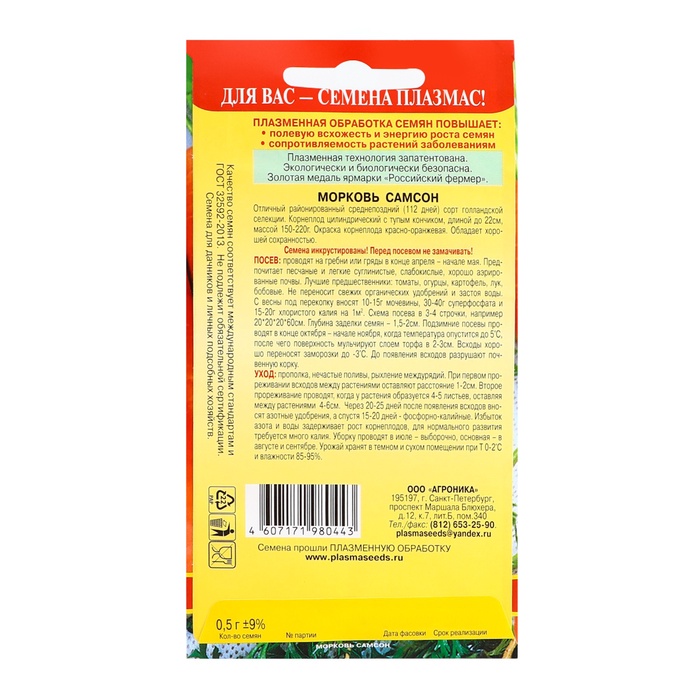 Производитель: Плазмас; Габариты: 11,5 x 7,5 x 0,3; Страна: Россия; В боксе: 30 шт; Состав: Семена; Материалы: семена; Фасовка: по 2 шт; Индивидуальная упаковка: Без упаковки; Сертификат: Не подлежит сертификации; Агрономический срок годности, лет: 3; Сроки созревания: Среднепоздний; Посев в грунт: Апрель; Упаковка: Цветная; Особенности выращивания: Открытый грунт; Сорт или гибрид: Сорт; Сорт: Самсон; Ампельные: Нет; Вьющиеся (лианы): Нет; Цвет плода: Оранжевый; Вид: Простые семена Наша коллекция семян включает как популярные овощи, так и яркие цветы, идеально подходящие для вашего сада. С нами вы сможете наслаждаться богатым урожаем и великолепием цветения в любое время года. Данные семена идеально подойдут для выращивания в вашем саду.