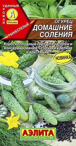 Раннеспелый сорт с высокими засолочными качествами плодов. Пчелоопыляемый, для выращивания в открытом грунте и под пленочными укрытиями. Первые огурчики снимают на 46-50 день после всходов. Растения, преимущественно, женского типа цветения. Зеленцы длиной 9-11 см., массой 90-110 г., с белым опушением. Вкус замечательный, плоды сочные, без горечи. При солении и консервировании они остаются упругими и сохраняют приятный хруст. Сорт устойчив к настоящей мучнистой росе и бактериозу, толерантен к пероноспорозу. Урожайность в о/г – 3-4 кг/м2, в защищенном – 9-10 кг/м2.