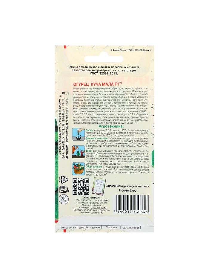 Производитель: Агрофирма АЭЛИТА; Габариты: 0,1 x 8 x 15; Доставка: Платная; Страна: Германия; В боксе: 50 шт; Состав: См. на упаковке; Материалы: см. на упаковке; Фасовка: по 10 шт; Индивидуальная упаковка: Без упаковки; Сертификат: Не подлежит сертификации; Тип: Партенокарпические; Сроки созревания: Ранний; Упаковка: Цветная; Место выращивания: Универсальный; Сорт или гибрид: Гибрид F1; Вегетационный период, дни: 44; Сорт: F1; Ампельные: Да; Вьющиеся (лианы): Да; Сроки созревания: Ранний ( до 48 дней); Размер: Корнишоны (до 12 см)