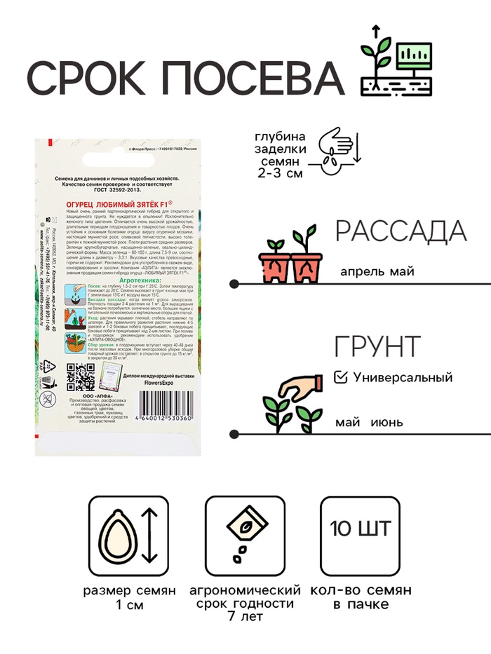 Производитель: Агрофирма АЭЛИТА; Габариты: 0,1 x 8 x 15; Страна: Германия; В боксе: 2300 шт; Состав: См. на упаковке; Материалы: см. на упаковке; Фасовка: по 10 шт; Индивидуальная упаковка: Без упаковки; Сертификат: Не подлежит сертификации; Тип: Партенокарпические; Сроки созревания: Ранний; Упаковка: Цветная; Место выращивания: Универсальный; Сорт или гибрид: Гибрид F1; Вегетационный период, дни: 39; Сорт: F1; Ампельные: Да; Вьющиеся (лианы): Да; Сроки созревания: Ранний ( до 48 дней); Размер: Корнишоны (до 12 см)