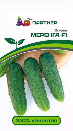 Семена Огурец Меренга F1. Раннеспелый, партенокарпический гибрид женского типа цветения. От всходов до начала плодоношения 38-42 дня. Растение сильнорослое, среднеплетистое, с букетным типом образования плодов. Зеленцы массой 65-90 г., зелёного цвета, белошипые, цилиндрической формы, длиной 11-13 см., диаметром 3 см.