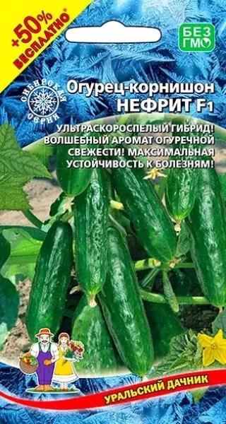 Высокоурожайный, ультраскороспелый гибрид, который легко формируется в условиях теплицы. Склонен к партенокарпии. Огурчики тёмно-зелёные, бугорчатые, некрупные 11-13 см., изящные и не желтеют. Вкусовые качества отличные, огурчики сочные, без горечи, с насыщенным ароматом.