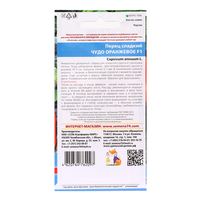 Производитель: Уральский Дачник; Габариты: 15 x 8 x 0,1; Страна: Россия; В боксе: 700 шт; Состав: Семена, см. на упаковке; Материалы: семена, см. на упаковке; Фасовка: по 1 шт; Сертификат: Не подлежит сертификации; Цвет: Оранжевый; Агрономический срок годности, лет: 3; Сроки созревания: Средний; Вкус: Сладкий; Особенности выращивания: Универсальный; Сорт или гибрид: Гибрид F1; Толстостенный тип: Да; Высота: Среднерослый Наша коллекция семян включает как популярные овощи, так и яркие цветы, идеально подходящие для вашего сада. С нами вы сможете наслаждаться богатым урожаем и великолепием цветения в любое время года. Данные семена идеально подойдут для выращивания в вашем саду.