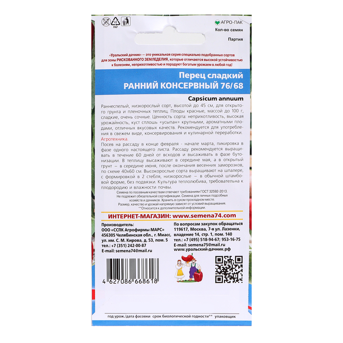 Семена Перец "Ранний Консервный 76/68", 20 шт
