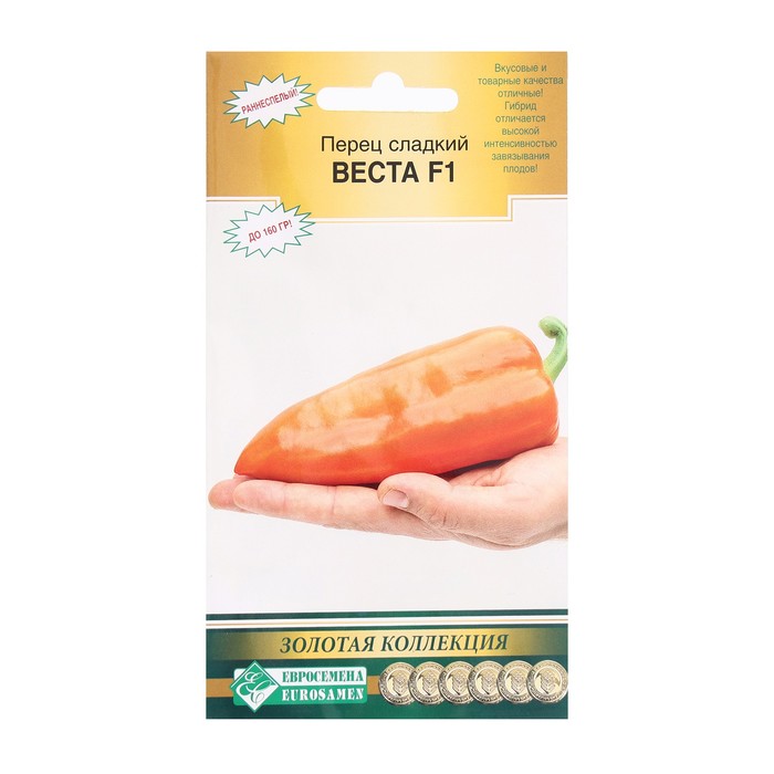 Производитель: Евросемена; Габариты: 15 x 8 x 0,2; Страна: Россия; В боксе: 100 шт; Состав: См. на упаковке; Материалы: см. на упаковке; Фасовка: по 10 шт; Индивидуальная упаковка: Без упаковки; Сертификат: Не подлежит сертификации; Цвет: Оранжевый; Агрономический срок годности, лет: 3; Сроки созревания: Ранний; Вкус: Сладкий; Особенности выращивания: Открытый грунт; Сорт или гибрид: Гибрид F1; Толстостенный тип: Да; Высота: Среднерослый