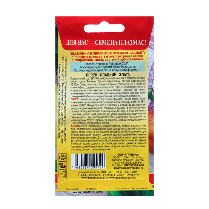 Производитель: Плазмас; Габариты: 11,5 x 7,5 x 0,3; Страна: Россия; В боксе: 30 шт; Состав: См. на упаковке; Материалы: см. на упаковке; Фасовка: по 10 шт; Индивидуальная упаковка: Без упаковки; Сертификат: Не подлежит сертификации; Цвет: Красный; Агрономический срок годности, лет: 3; Сроки созревания: Среднепоздний; Вкус: Сладкий; Особенности выращивания: Универсальный; Сорт или гибрид: Сорт; Толстостенный тип: Да; Высота: Среднерослый