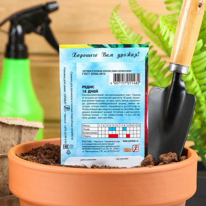 Производитель: Сембат; Габариты: 11 x 8 x 0,2; Страна: Россия; В боксе: 800 шт; Состав: Семена; Материалы: семена; Фасовка: по 10 шт; Индивидуальная упаковка: Без упаковки; Сертификат: Не подлежит сертификации; Агрономический срок годности, лет: 4; Сроки созревания: Ранний; Посев в грунт: Май, Июнь, Сентябрь, Август, Апрель, Июль; Особенности выращивания: Открытый грунт; Сорт или гибрид: Сорт; Цвет плода: Розовый; Вид: Семечки; Форма: Круглая; С белым кончиком: Нет