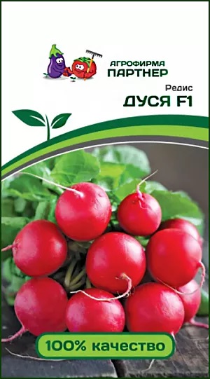 Гибрид раннеспелый. От всходов до потребления 23-25 дней. Корнеплоды очень выровненные по форме, массой около 30 г, необыкновенного вкуса без горечи, с нежным ароматом, сладковатые. Мякоть снежно-белого цвета, маслянистая, искрящаяся, нежного слабоострого вкуса, приятно хрустящая. Листовая розетка полу раскидистая, упругая, очень маленькая; окраска черешков имеет сильно антоциановый цвет. Корнеплоды имеют округлую форму, аккуратный тонкий корешок, кончик которого белый, а сам корнеплод окрашен в малиново-розовый цвет. В любом возрасте редис не имеет пустот и не дряблеет, долго сохраняет свой товарный вид. Плотность посадки 200-220 растений/м2. Урожайность 5-6 кг/м2.