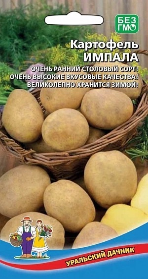 Очень ранний сорт, столового назначения. Куст средний. Клубни овальные. Кожура желтая, гладкая. Глазки мелкие. Мякоть светло-желтая, с хорошим вкусом. Содержание крахмала 10,2–11,5%. Масса товарного клубня 90–150 г. Устойчив к раку, картофельной нематоде. Лежкость хорошая, период покоя клубней продолжительный.