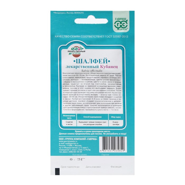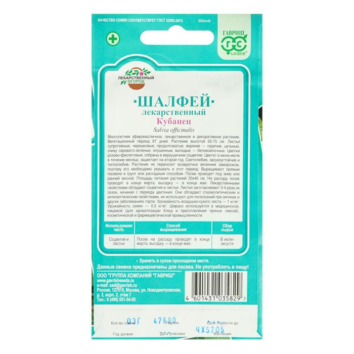 Семена Шалфей лекарственный" Кубанец", ц/п, 0,3 г