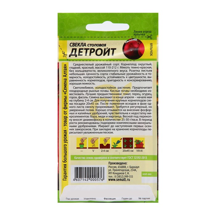 Производитель: Семена Алтая; Габариты: 15 x 8 x 0,4; Страна: Россия; В боксе: 250 шт; Состав: См. на упаковке; Материалы: см. на упаковке; Фасовка: по 10 шт; Индивидуальная упаковка: Без упаковки; Сертификат: Не подлежит сертификации; Агрономический срок годности, лет: 4; Сроки созревания: Средний; Посев на рассаду: Апрель, Февраль; Посев в грунт: Апрель, Май; Особенности выращивания: Открытый грунт; Сорт или гибрид: Сорт; Вид: Семечки; Форма: Круглая