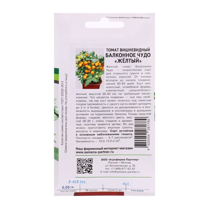 Производитель: Агрофирма Партнер; Габариты: 15 x 8 x 0,1; Страна: Россия; В боксе: 250 шт; Состав: См. на упаковке; Материалы: см. на упаковке; Фасовка: по 1 шт; Индивидуальная упаковка: Без упаковки; Сертификат: Не подлежит сертификации; Цвет: Жёлтый; Агрономический срок годности, лет: 4; Сроки созревания: Ранний; Особенности выращивания: Открытый грунт; Сорт или гибрид: Сорт; Форма томатов: Черри