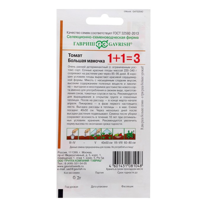 Производитель: Гавриш; Габариты: 15 x 8 x 0,2; Страна: Россия; В боксе: 200 шт; Состав: Семена; Материалы: семена; Фасовка: по 10 шт; Индивидуальная упаковка: Без упаковки; Сертификат: Не подлежит сертификации; Цвет: Красный; Агрономический срок годности, лет: 4; Сроки созревания: Ранний; Особенности выращивания: Закрытый грунт (теплицы, укрытия); Сорт или гибрид: Сорт; Форма томатов: Круглые; Тип роста: Детерминантный (среднерослый)