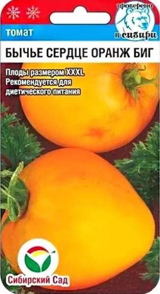 Среднеспелый урожайный крупноплодный сорт для отрытого и защищенного грунта. Привлекателен большими сердцевидными плодами оранжевого цвета, хорошим вкусом, достойной урожайностью. Содержит меньшее количество кислот, что важно для питания людей с проблемами желудочно - кишечного тракта.