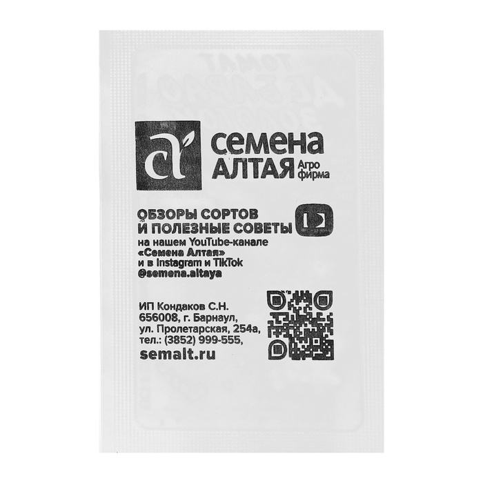 Производитель: Семена Алтая; Габариты: 0,2 x 8 x 15; Страна: Россия; Состав: Семена; Материалы: семена; Фасовка: по 1 шт; Сертификат: Не подлежит сертификации; Цвет: Жёлтый; Количество семян, г: 0,1; Агрономический срок годности, лет: 4; Сроки созревания: Поздний; Посев на рассаду: Февраль, Март; Посев в грунт: Май, Июнь; Особенности выращивания: Открытый грунт, Закрытый грунт (теплицы, укрытия); Сорт или гибрид: Сорт; Форма томатов: Сливовидные; Тип роста: Индетерминантный (высокорослый); Вид: Простые семена; Применение: Для засолки и маринования, Для салатов; Вес: Среднеплодные (от 25 до 150 г); Нуждаются в пасынковании: Да