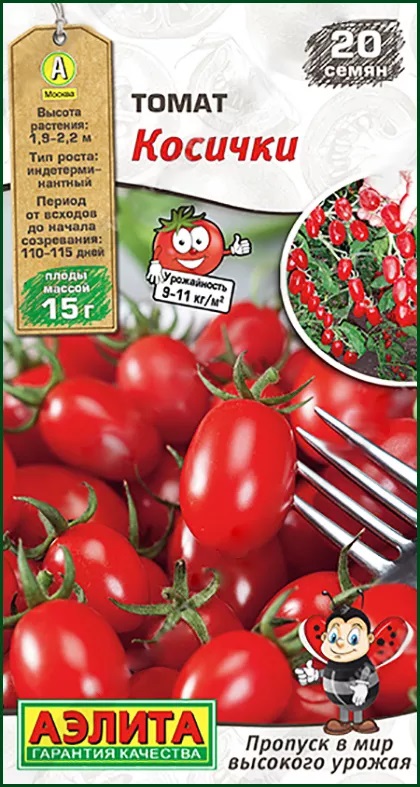 Яркие и вкусные томатные косы! Индетерминантный среднеспелый сорт томата-черри. Отлично удается в условиях теплицы. Растения высотой 1,9-2,2 м. Образуют множество сложных кистей, в каждой – до 50 плодов! Первый урожай созревает через 110-115 дней после появления всходов. Плоды-сливки массой 10-15 г, плотные, мясистые, сладкие. Отличный выбор доля маринования и засолки. Урожайность в защищенном грунте достигает 9-11 кг/м2.