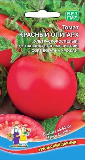 Красный олигарх — богат на урожай! Выдающийся ультраранний сорт Челябинской селекции для открытого грунта. На Урале лето нестабильное: то жара, то холод, поэтому и требования к сорту: холодостойкость, хорошая завязываемость плодов при таких сложных, неблагоприятных погодных условиях. Растения детерминантные, высотой до 50 см., просты в уходе и не требуют пасынкования, прищипки, подвязки. Плоды наивкуснейшие, округлой формы, цвета бордо, массой около 100 гр., все равны как на подбор.