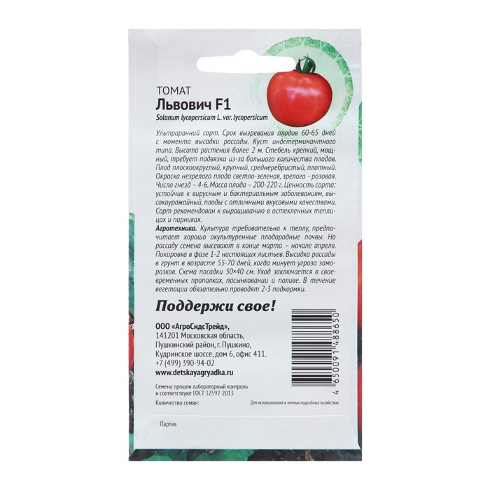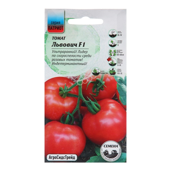 Производитель: Агросидстрейд; Габариты: 15 x 8 x 0,1; Страна: Россия; В боксе: 600 шт; Состав: Семена; Материалы: семена; Фасовка: по 3 шт; Сертификат: Не подлежит сертификации; Цвет: Розовый; Агрономический срок годности, лет: 4, 5; Сроки созревания: Ранний; Особенности выращивания: Универсальный; Сорт или гибрид: Сорт; Форма томатов: Плоскоокруглые; Тип роста: Индетерминантный (высокорослый)