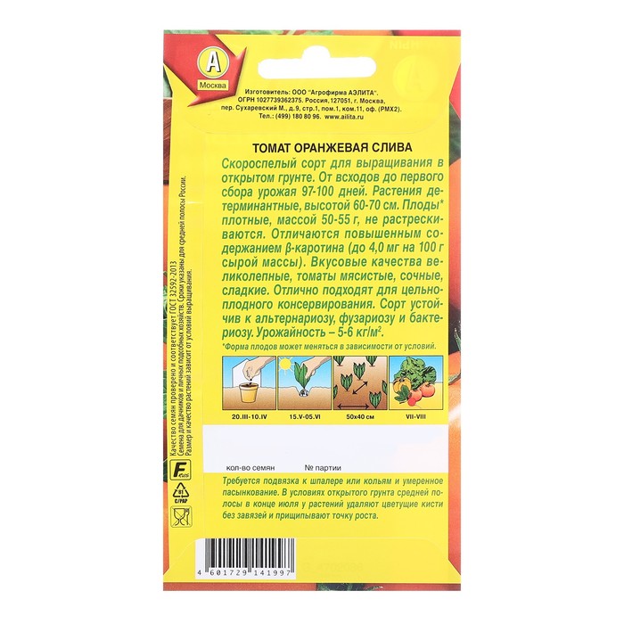 Производитель: Агрофирма АЭЛИТА; Габариты: 15 x 8 x 0,1; Страна: Россия; В боксе: 600 шт; Состав: См. на упаковке; Материалы: см. на упаковке; Фасовка: по 10 шт; Сертификат: Не подлежит сертификации; Цвет: Оранжевый; Агрономический срок годности, лет: 4; Сроки созревания: Ранний; Особенности выращивания: Открытый грунт; Сорт или гибрид: Сорт; Форма томатов: Сливовидные; Тип роста: Детерминантный (среднерослый) Наша коллекция семян включает как популярные овощи, так и яркие цветы, идеально подходящие для вашего сада. С нами вы сможете наслаждаться богатым урожаем и великолепием цветения в любое время года. Данные семена идеально подойдут для выращивания в вашем саду.