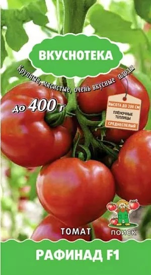 Среднеспелый гибрид для выращивания в плёночных теплицах и под плёночными укрытиями. Период от всходов до начала созревания 110-115 дней. Растение индетерминантное, высотой до 200 см, хорошо облиственное, плоды собраны в простую компактную кисть по 4-6 штук. Плод округлой формы, плотный, слаборебристый, красной окраски с глянцевым блеском. Масса плода - 250-300 г. (до 400 г.). Отличный вкус и аромат. Для свежего потребления. Устойчив к стрессовым условиям выращивания, к болезням