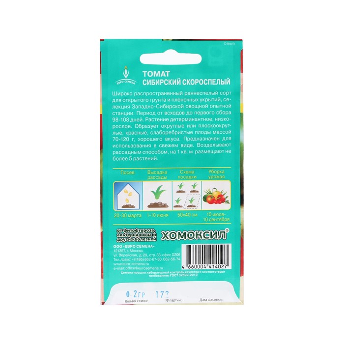 Производитель: Евро-семена; Габариты: 15 x 8 x 0,1; Страна: Россия; В боксе: 1600 шт; Состав: См. на упаковке; Материалы: см. на упаковке; Фасовка: по 10 шт; Индивидуальная упаковка: Без упаковки; Сертификат: Не подлежит сертификации; Цвет: Красный; Агрономический срок годности, лет: 4; Сроки созревания: Ранний; Особенности выращивания: Универсальный; Сорт или гибрид: Сорт; Форма томатов: Плоскоокруглые; Фиксированная цена: Да