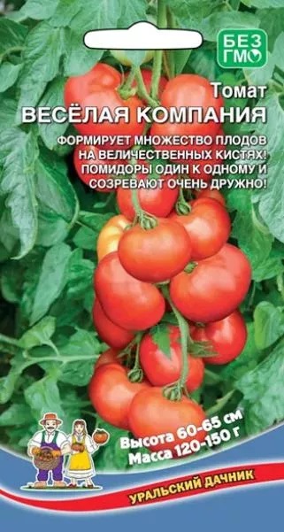 Вместе весело шагать... Помните эту знаменитую детскую песенку? Так вот она как нельзя лучше характеризует этот сорт томата, он формирует множество плодов на величественных кистях и все они один к одному и созревают очень дружно — вот такая она эта Весёлая компания. Растение детерминантное, сплошь увешано плодами глубокого алого цвета, массой 150-240 г. Мясистые, сладкие, задорные с очень тонкой кожей и малым количеством семян. Никогда не подведёт хозяйку на столе, а при консервировании просто восхитителен. Устойчив к фузариозу и гнили даже в сырую погоду. Урожайность может достигать более 20 кг/м.