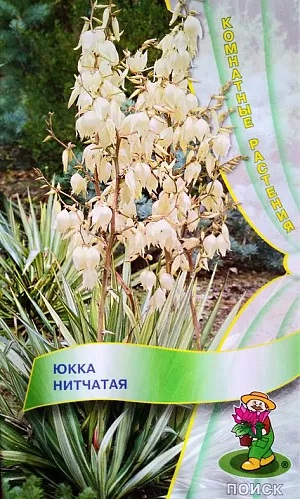 Семена Юкка Нитчатая. Юкка нитчатая: почти бесстебельное растение. Листья сизо-зеленые до 70 см длиной, при ширине 4 см, с заостренной верхушкой, края опушены многочисленными белыми, тонкими, завивающимися нитями. Цветочная метелка до 200 см высотой. Цветки желтовато-белые, поникающие, до 8 см длиной. Благодаря корневым отпрыскам разрастается. Корневая система глубоко проникает в почву. Одна из наиболее морозостойких юкк, выносит кратковременные морозы до -20°С, иногда и больше.