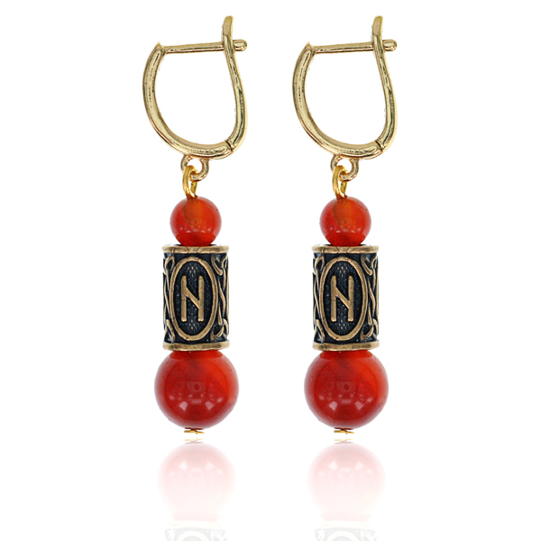 Серьги-амулеты с руническими бусинами, натуральными камнями и качественными швензами с английским замком.