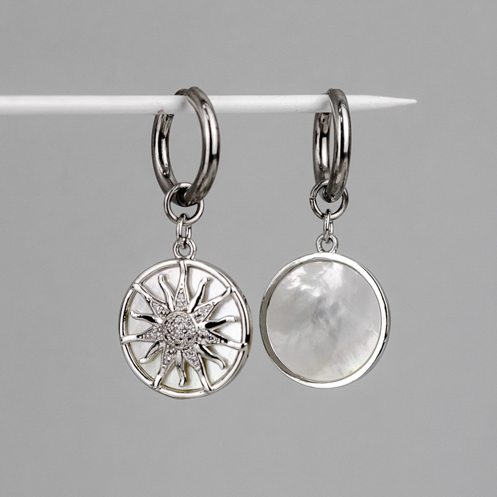 Тип изделия: Серьги; Проба: Биж.сплав гальван.покр.; Цвет металла: Белый; Вставка: Кубический цирконий, Перламутр