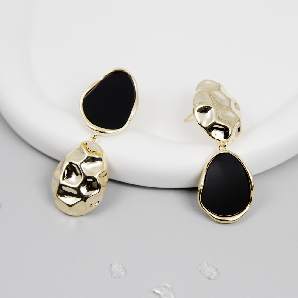 Тип изделия: Серьги; Проба: Биж.сплав гальван.покр.; Цвет металла: Желтый; Вставка: Оникс синтетический