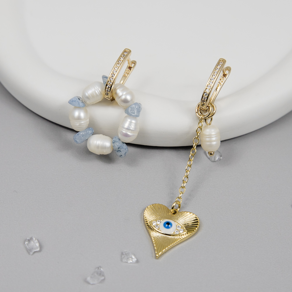 Тип изделия: Серьги; Проба: Биж.сплав гальван.покр.; Цвет металла: Желтый; Вставка: Кубический цирконий, Жемчуг имитация, Кварц, Ювелирная смола