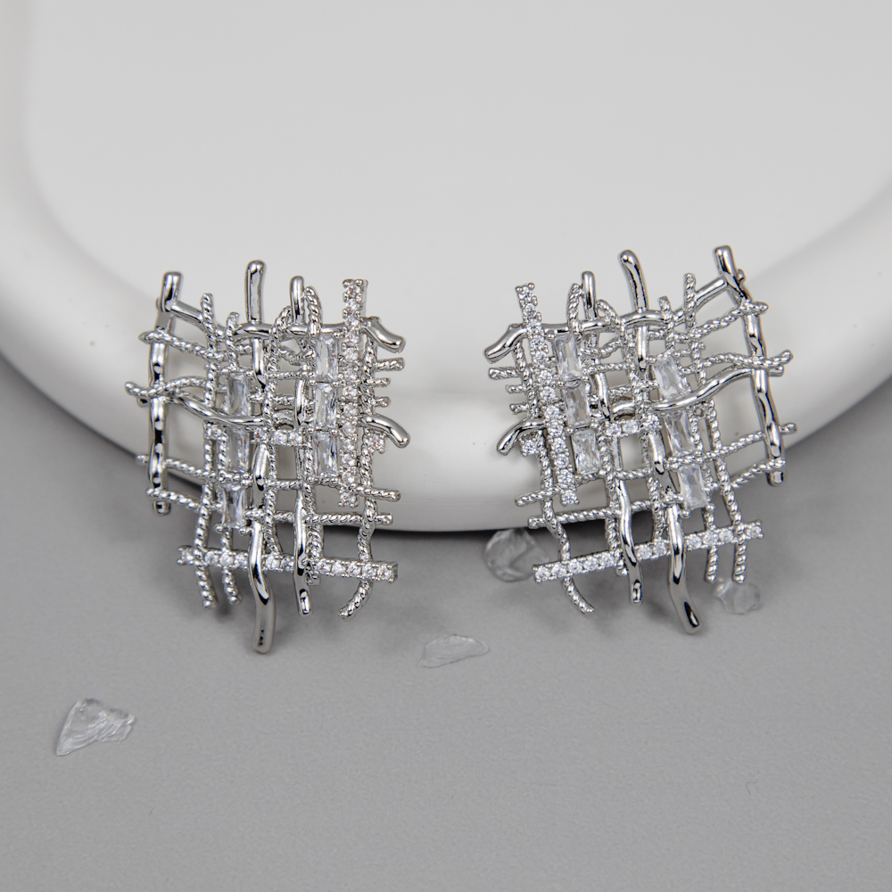 Тип изделия: Серьги; Проба: Биж.сплав гальван.покр.; Цвет металла: Белый; Вставка: Кубический цирконий