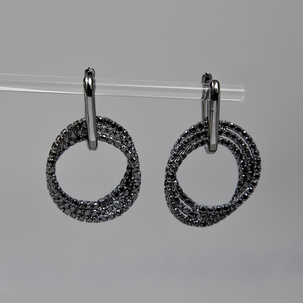 Тип изделия: Серьги; Проба: Биж.сплав гальван.покр.; Цвет металла: Черный; Вставка: Кубический цирконий