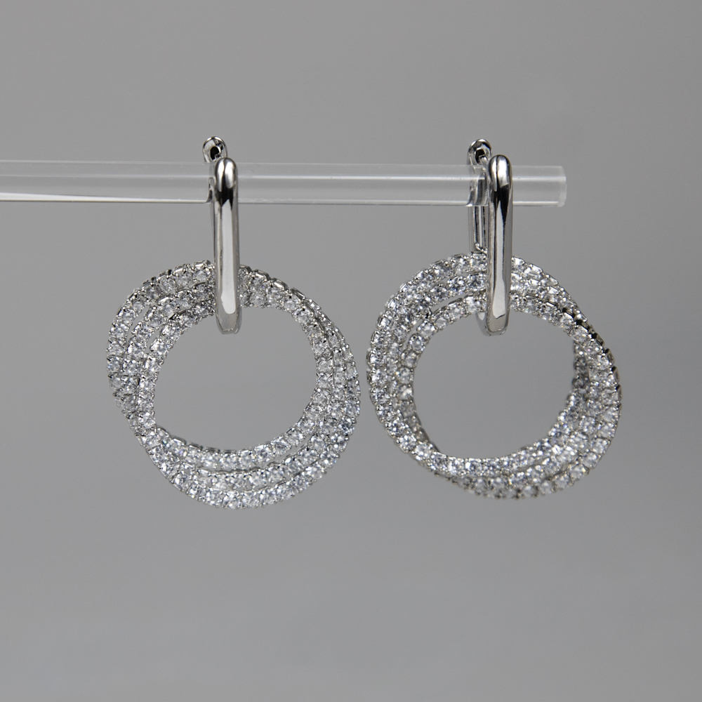 Тип изделия: Серьги; Проба: Биж.сплав гальван.покр.; Цвет металла: Белый; Вставка: Кубический цирконий