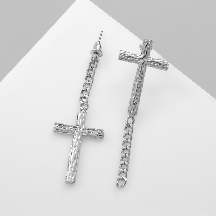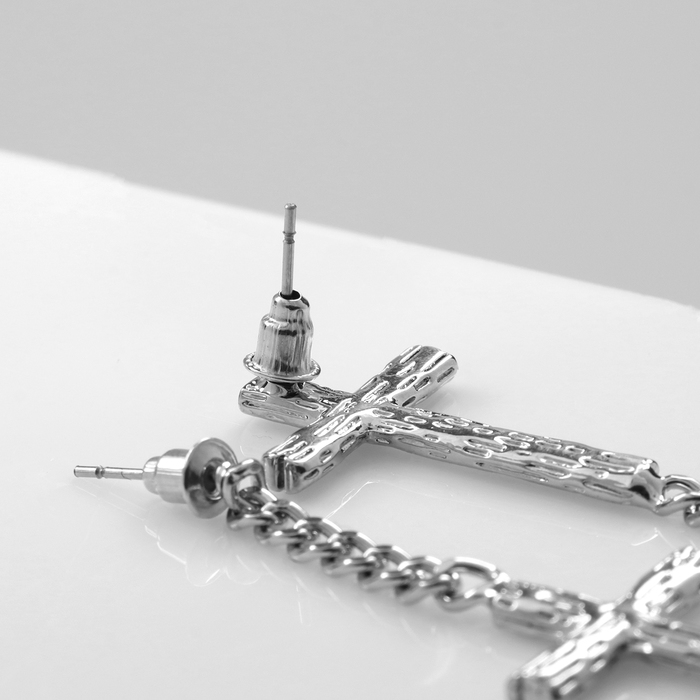 Серьги металл «Крест и цепочка» плетение, цвет серебро - яркий элемент на Хэллоуин, который порадует любого.