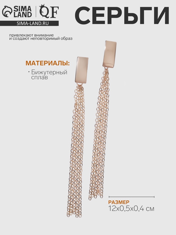 Производитель: QF; Габариты: 10,5 x 7 x 1; Цвет: Золотистый; Тематика праздника: Универсальная тематика, 14 Февраля, День рождения, 8 Марта; Адресат: Подруге, Маме, Дочке, Сестре; Цвет фурнитуры: Золотой; Страна: Китай; В боксе: 120 пара; Состав: Бижутерный сплав; Материалы: бижутерный сплав; Фасовка: по 6 пара; Индивидуальная упаковка: Подложка, пакет; Габариты товара: 12 см × 0,5 см × 0,4 см; Сертификат: Не подлежит сертификации; Набор: Нет; Для кого: Для женщины; Длина, см: 12; Материал: Металл; Вставка/Подвеска: Без вставок; Материал основания: Металл; Вид застёжки: Застёжка пусет (гвоздик); Составляющие набора: Серьги; Материал основы: Металл; Возраст: Для взрослых; Тематика: Цепь; Фиксированная цена: Да