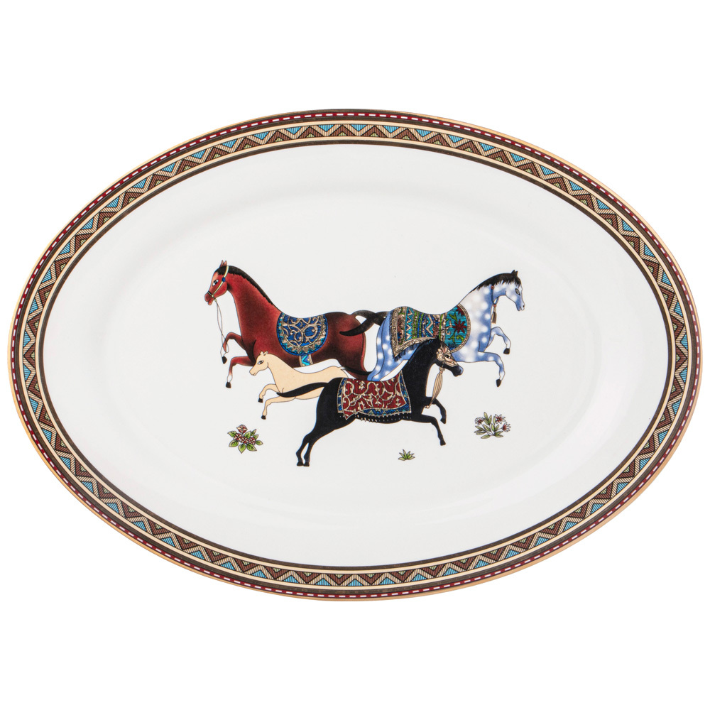 ТМ Lefard коллекция Passage мужественная и стильная. Движения лошадей эластичные, элегантные с активным импульсом. Каждая диагональная пара ног поднимается и ставится в очень точном ритме и с подвисанием. Шея лошади приподнята и округлена, затылок находится в высшей точке, голова опущена почти вертикально. Этот ритм завораживает. Посуда для сервировки стола из тонкостенного упрочненного фарфора неповторима. Прямые формы. Декор с богатым орнаментом и золотой окантовкой. Посуда прошла сертификацию. Безопасна для контакта с пищевыми продуктами. Отличный подарок. Не использовать в микроволновой печи, не рекомендуется мыть в посудомоечной машине.