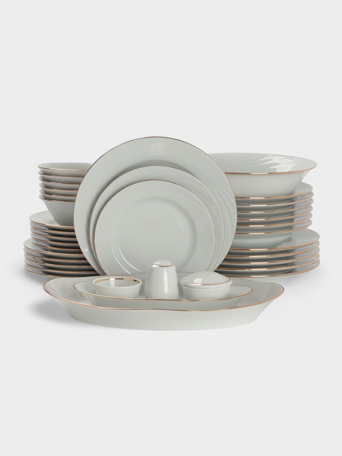 Габариты: 42 x 29 x 23 Страна: Беларусь В боксе: 1 набор В наборе: 36 набор Состав: Фарфор Материалы: фарфор Фасовка: по 1 набор Индивидуальная упаковка: Картонная коробка Сертификат: РСТ Набор: Да Цвет: Золотистый, Белый В наборе, шт.: 36 Тематика: Однотонная Рисунок: Да Материал: Фарфор Вид тарелки: Плоская Можно мыть в посудомоечной машине: Нет Можно использовать в СВЧ-печи: Нет Текстура: Гладкая Особенности: С золотой отводкой Матовая поверхность: Нет Для горячего: Да Выпускаемая продукция ЗАО «Добрушский фарфоровый завод» является высококачественной, экологически чистой, соответствует требованиям международных и европейских норм. Изделия из фарфора бывают настолько тонки, что через них просматривается солнечный свет. Несмотря на всю утончённость, вся фарфоровая посуда наделена особой прочностью. Преимущества: