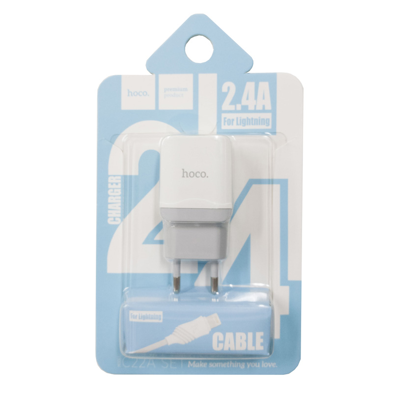 Сетевое зарядное устройство hoco C22А Lightning 2.4 A белое