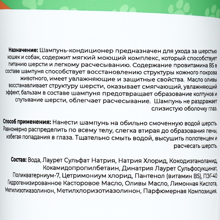 Производитель: Пижон; Габариты: 16,5 x 7 x 7; Страна: Россия; В боксе: 9 шт; Состав: См. на упаковке; Материалы: см. на упаковке; Фасовка: по 1 шт; Индивидуальная упаковка: Без упаковки; Сертификат: Не подлежит сертификации; Объём, мл: 500; Возраст животного: Универсальный (для всех возрастов); Аромат: Без аромата; Назначение: Универсальный; Тип: Универсальный; Темпер. ограничение НЕ НИЖЕ ℃: +1; Темпер. ограничение НЕ ВЫШЕ ℃: +30 Шампунь-кондиционер "Пижон" - это универсальное решение для собак и кошек. Наш продукт обеспечивает комплексный уход за шерстью, очищая ее, придавая мягкость и блеск, а также упрощая расчесывание. Этот шампунь-кондиционер позволяет сделать процесс ухода за пушистиками легким и эффективным, оставляя их шерсть здоровой и красивой. СОСТАВ: Вода, Лаурет Сульфат Натрия, Натрия Хлорид, Кокодиэтаноламид, Кокамидопропилбетаин, Динатрия Лаурет Сульфосукцинат, Поликватерниум-7, Цетримониум хлорид, Пантенол( витамин В5), ПЭГ-40 Гидрогенизированное Касторовое Масло, Оливы Масло, Лимонная Кислота, Метилизотиазолинон, Метилхлоризотиазолинон, Парфюмерная Композиция.