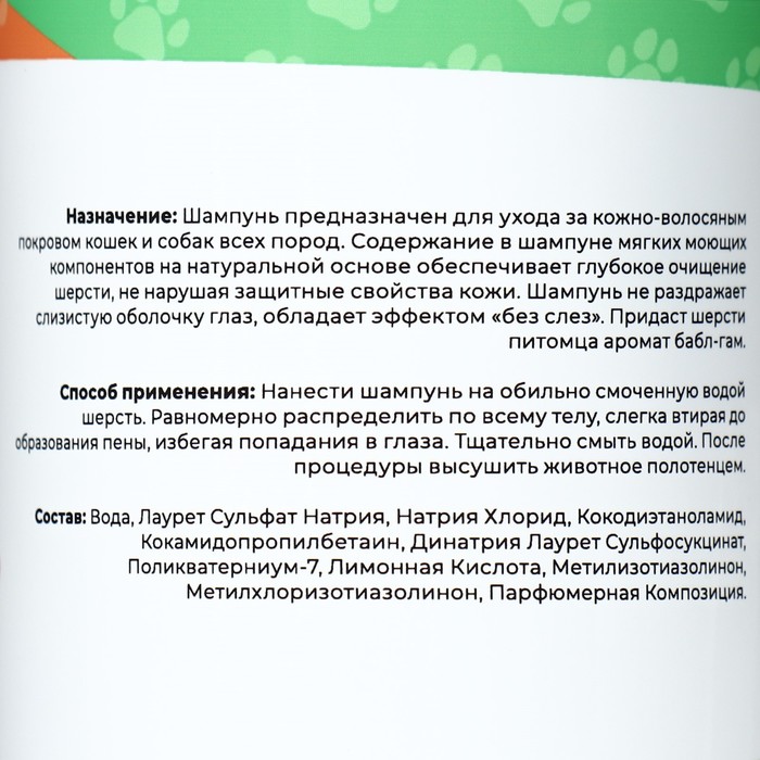 Производитель: Пижон; Габариты: 16,5 x 7 x 7; Страна: Россия; В боксе: 9 шт; Состав: См. на упаковке; Материалы: см. на упаковке; Фасовка: по 1 шт; Индивидуальная упаковка: Без упаковки; Сертификат: Не подлежит сертификации; Объём, мл: 500; Возраст животного: Универсальный (для всех возрастов); Аромат: Бабл-гам; Назначение: Универсальный; Тип: Универсальный; Темпер. ограничение НЕ НИЖЕ ℃: +1; Темпер. ограничение НЕ ВЫШЕ ℃: +30