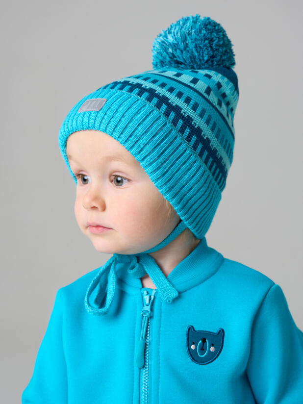 Эта модель подойдёт и как вязаная шапка с флисовой подкладкой, и как шапка с завязками для малыша — ничего лишнего, только тепло, удобство и проверенный комфорт PlayToday.