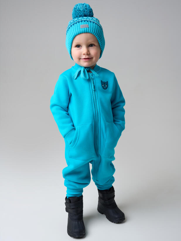 Шапка выполнена из эластичной одинарной вязки — дышит, но отлично держит тепло. Внутри — флисовая подкладка, нежная и приятная к коже, которая сразу создаёт ощущение уюта. Благодаря завязкам, шапка надёжно фиксируется и не сползает — ребёнку тепло даже во время активных игр, а родителям спокойно.