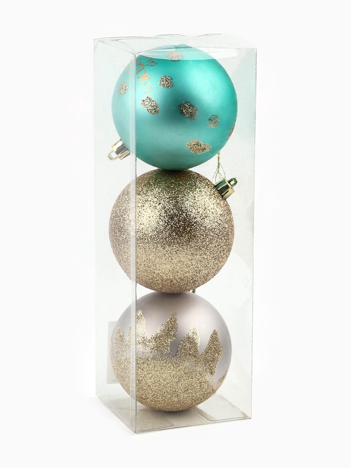 Габариты: 8 x 8 x 24 Страна: Китай В боксе: 50 набор Состав: Пластик Материалы: пластик Фасовка: по 1 набор Индивидуальная упаковка: PVC коробка Габариты товара: 7,8 см × 7,8 см × 23,5 см Сертификат: Не подлежит сертификации Набор: Да Цвет: Золотистый, Розовый, Бирюзовый В наборе, шт.: 3 Диаметр шара, см: 8 Символ года: Нет Материал: Пластик Фиксированная цена: Да Комментарии к товару