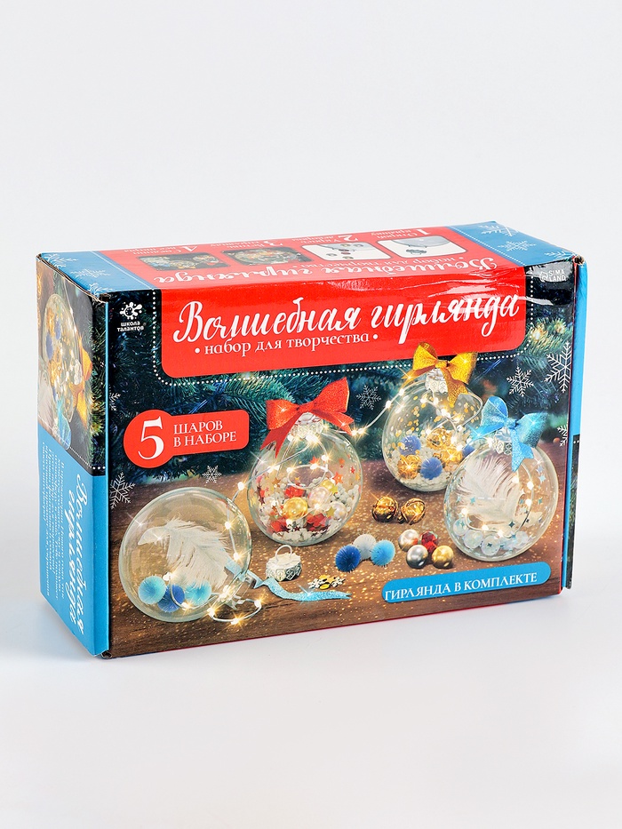 Производитель: Школа талантов; Габариты: 14 x 19,5 x 7,5; Страна: Китай; В боксе: 48 набор; В наборе: 5 набор; Состав: Пластик; Материалы: пластик; Фасовка: по 1 набор; Индивидуальная упаковка: Цветная картонная коробка; Сертификат: ЕАС; Причина уценки: нарушена упаковка; Возраст: От 3 лет; Символ года: Нет; Тематика праздника: Новый год; Материал: Пластик; Для создания: Набор для декорирования; Составляющие набора: Товары для творчества, Гирлянда; Возраст: Для взрослых