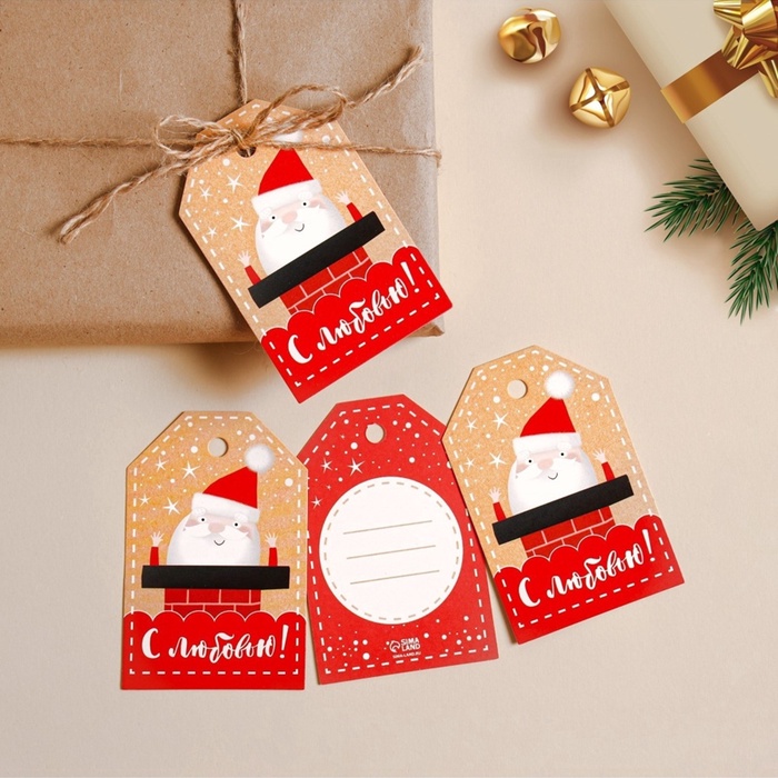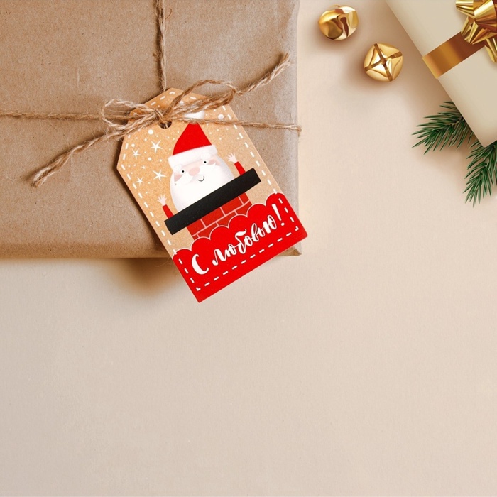 Шильдик новогодний декоративный на подарок «С любовью», 6.5 х 9.5 см